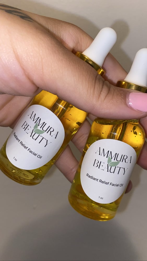 Our Radiant Relief Facial Oil uses a unique 100% ORGANIC PLANT OIL remedy using many different plant oils, infused with 24k gold flakes that all helps with acne, eczema, skin inflammations, lightening dark spots, anti-aging, hydration, evening out your skin tone, and more!