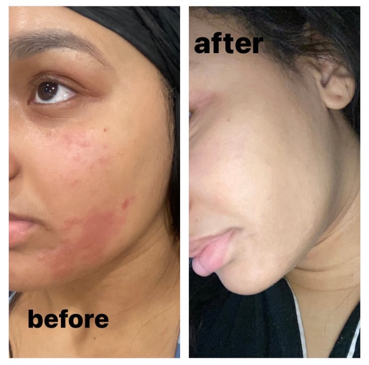 Turmeric helps with acne scarring, increases healing of skin, helps redness and inflammation, minimizes dark spots and many more!